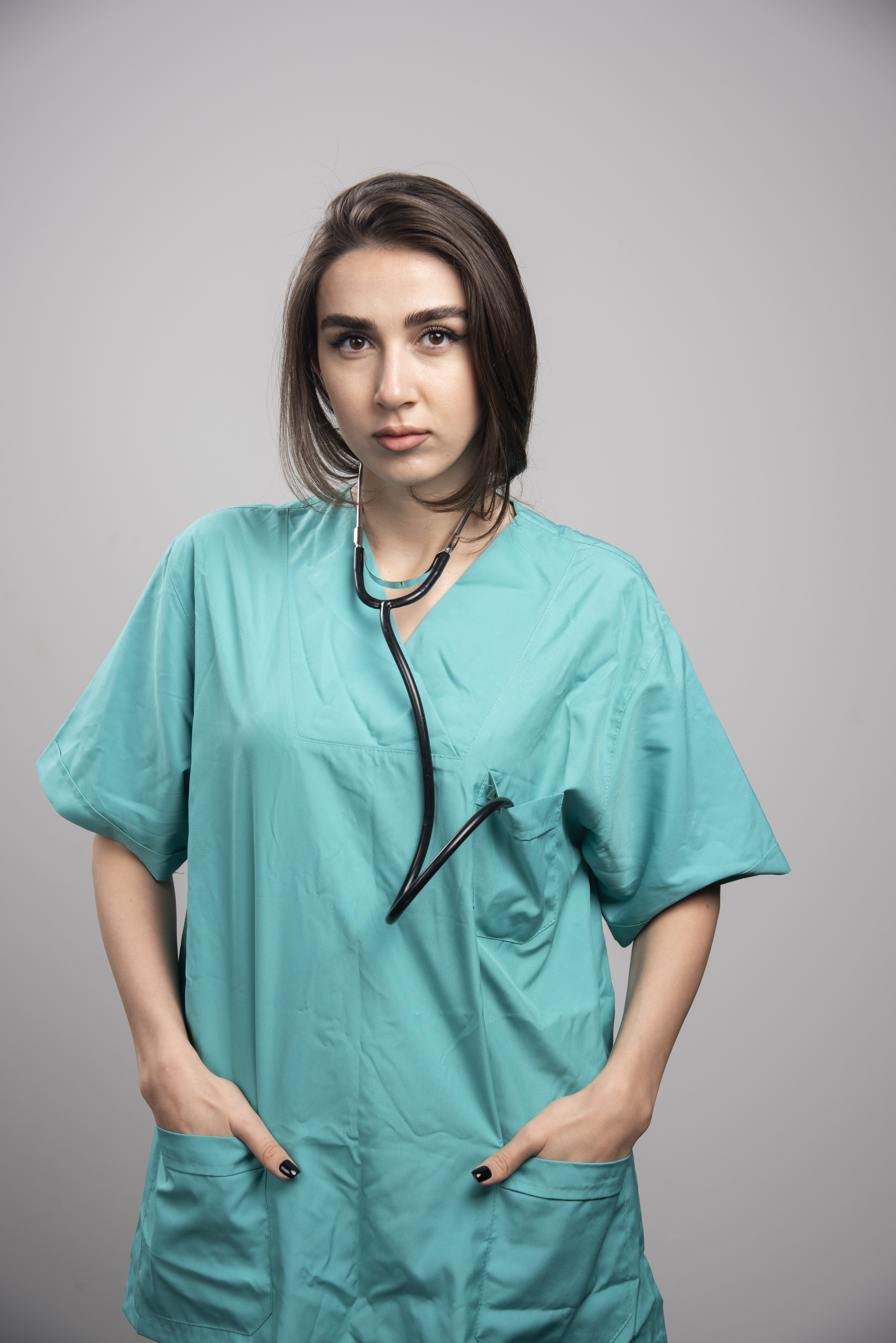 Bata antifluido con horma femenina. Ligera, fácil de limpiar y de secado rápido.